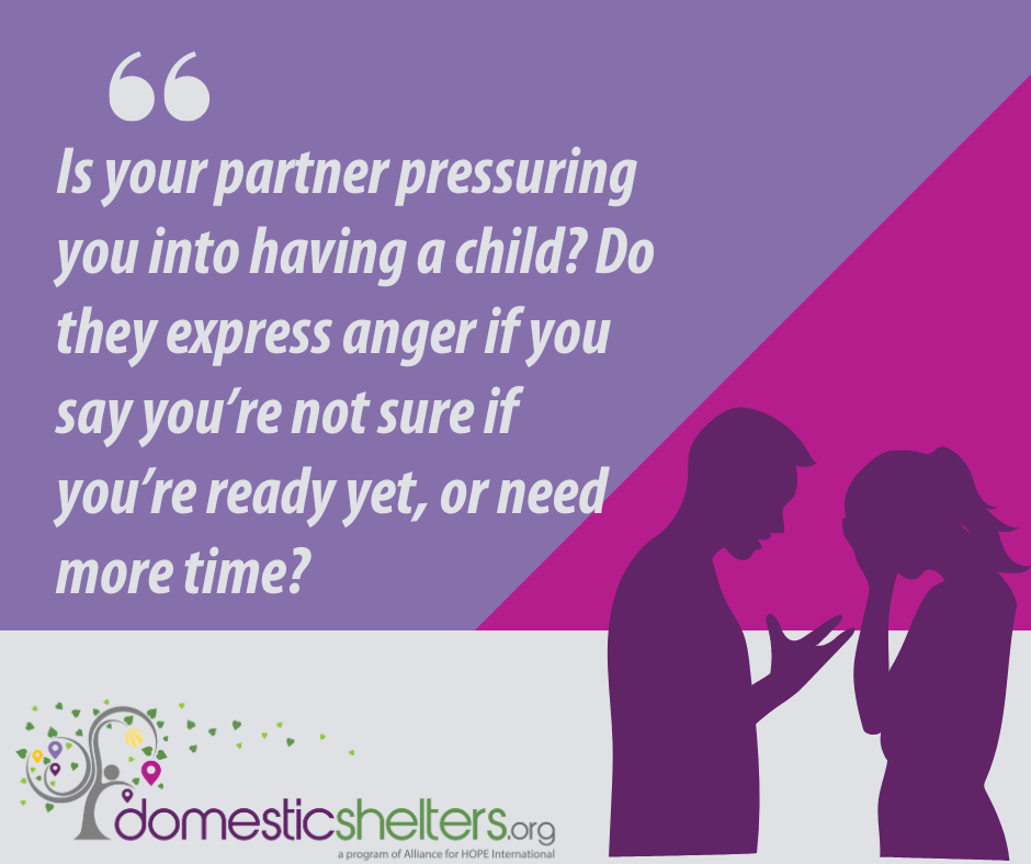 - Is your partner pressuring you into having a child? Do they express anger if you say you’re not sure if you’re ready yet, or need more time?
