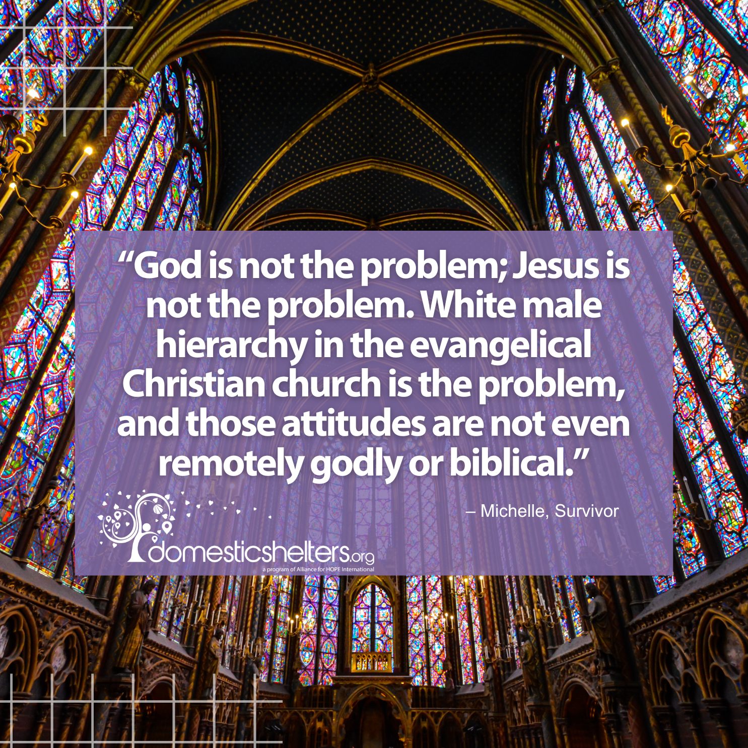 “God is not the problem; Jesus is not the problem. White male hierarchy in the evangelical Christian church is the problem, and those attitudes are not even remotely godly or biblical.”