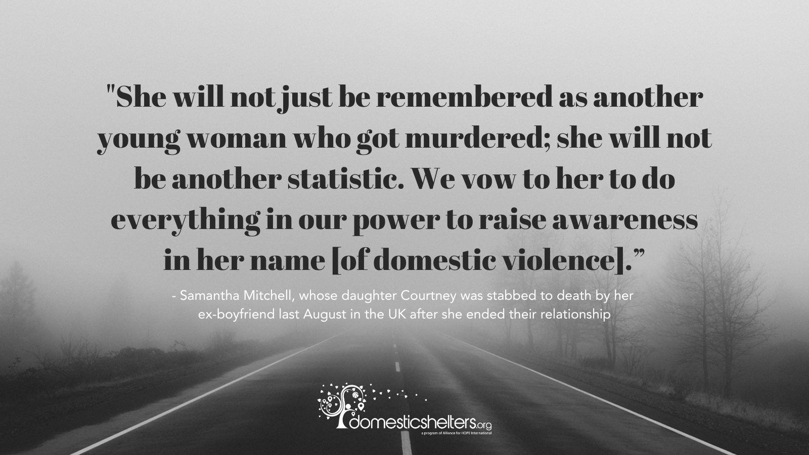 "She will not just be remembered as another young woman who got murdered; she will not be another statistic. We vow to her to do everything in our power to raise awareness in her name [of domestic violence]. This is a national problem that needs to be taken seriously."