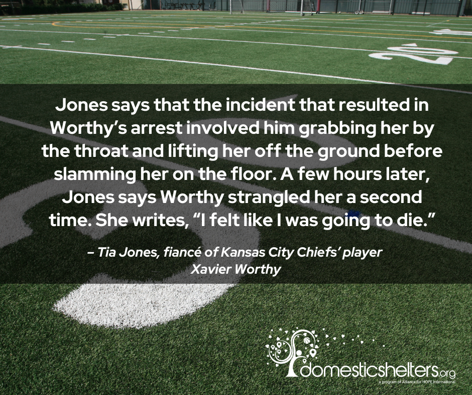 In the filing, Worthy’s fiancé, Tia Jones, says the 21-year-old NFL player had physically assaulted her at least five times over the last year. She claims that, in separate incidents, he pushed her to the ground using both hands, picked her up and slammed her on the bed and strangled her during an argument. Jones says that the incident that resulted in Worthy’s arrest involved him grabbing her by the throat and lifting her off the ground before slamming her on the floor. A few hours later, Jones says Worthy strangled her a second time. She writes, “I felt like I was going to die.”