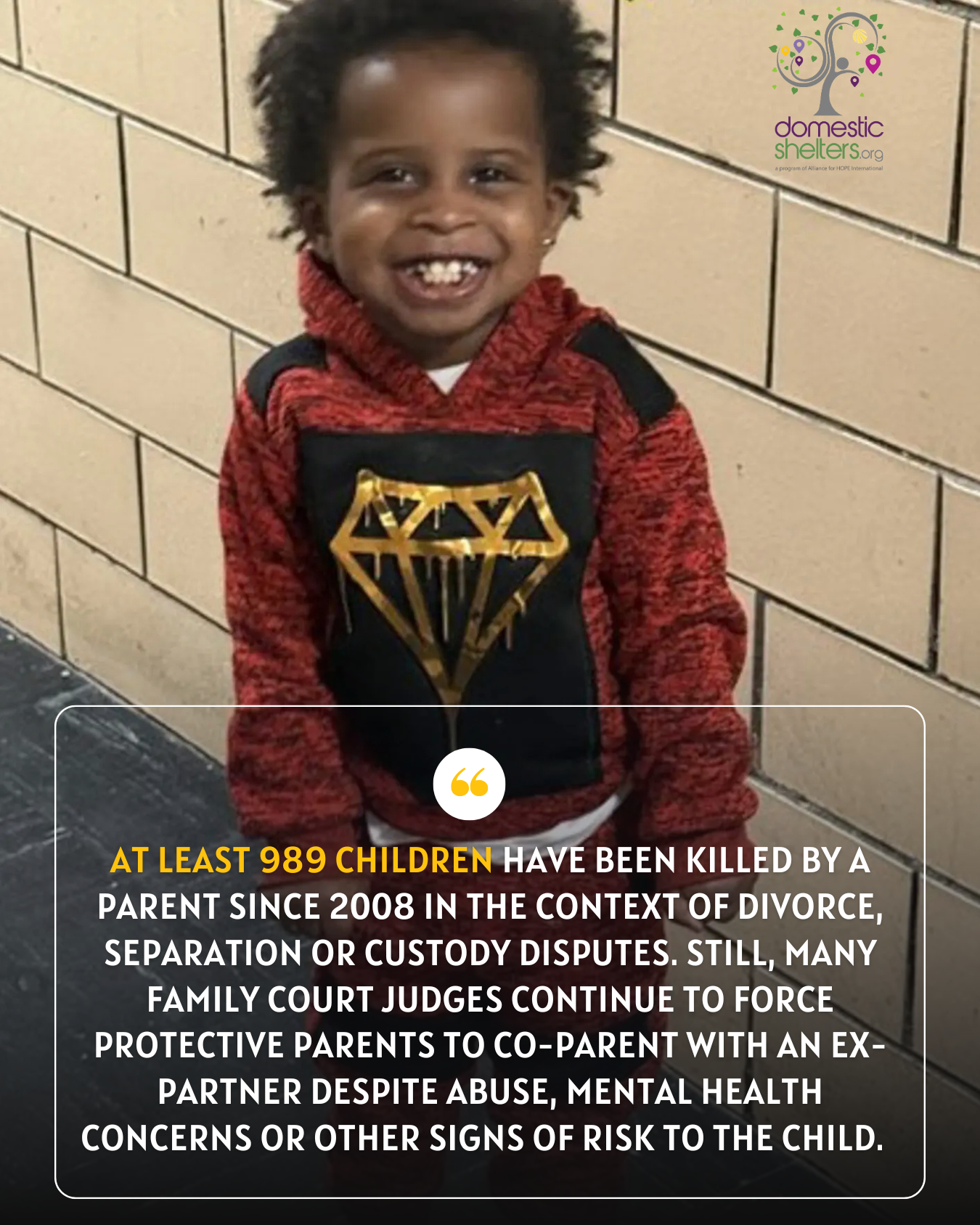 An estimated 989 children, at least, have been killed by a parent since 2008 in the context of divorce, separation or custody disputes. Still, many family court judges continue to force protective parents to co-parent with an ex-partner despite abuse, mental health concerns or other signs of risk to the child.