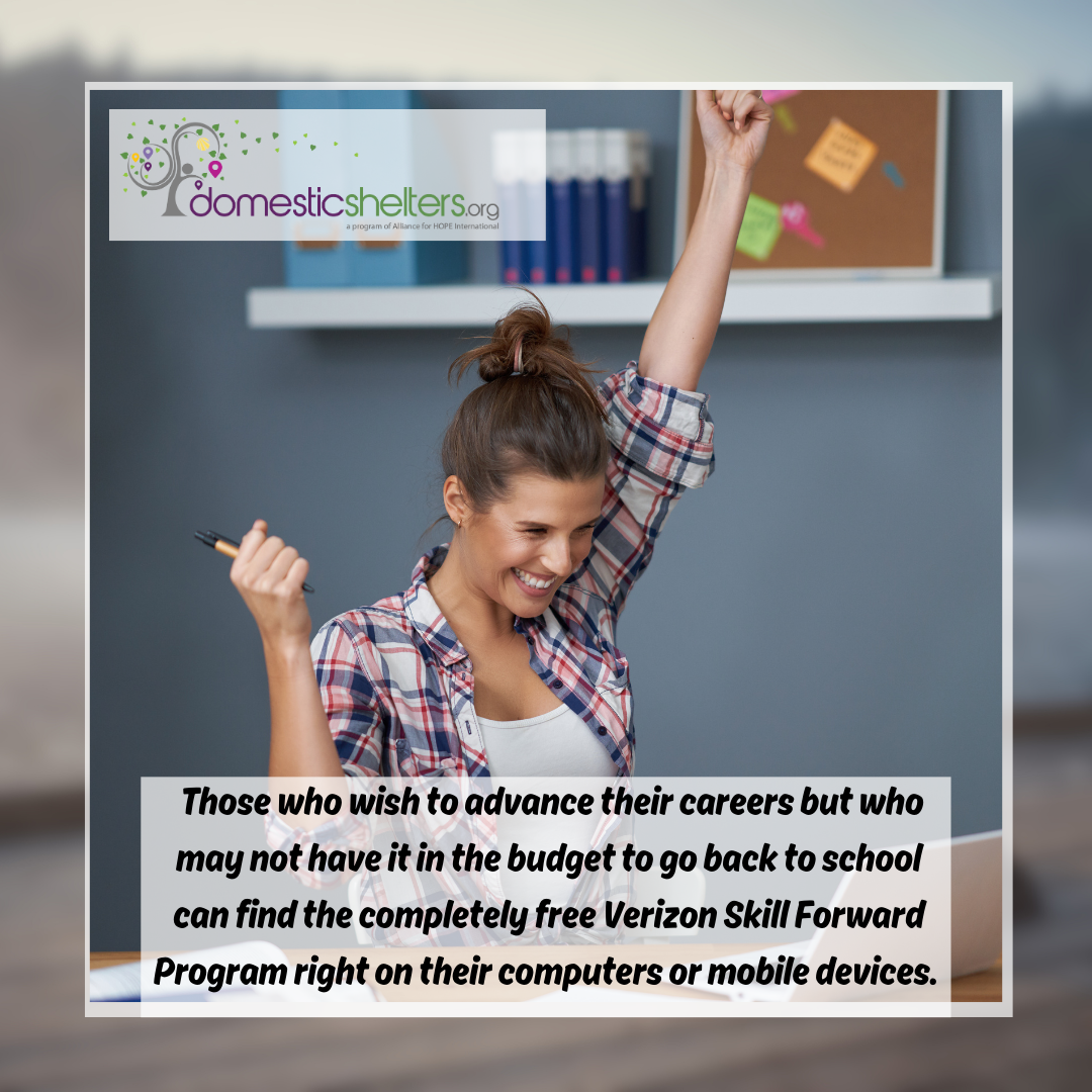 Verizon Wireless isn’t your ordinary telecommunications company. Beyond simply bridging the divide between people through its cell phone service, Verizon also wants to build bridges between individuals and their career goals. Working with Alliance for HOPE International since last November, Verizon is inviting survivors of domestic violence, advocates, support persons and anyone else wanting to further their education to join the Verizon Skill Forward program.