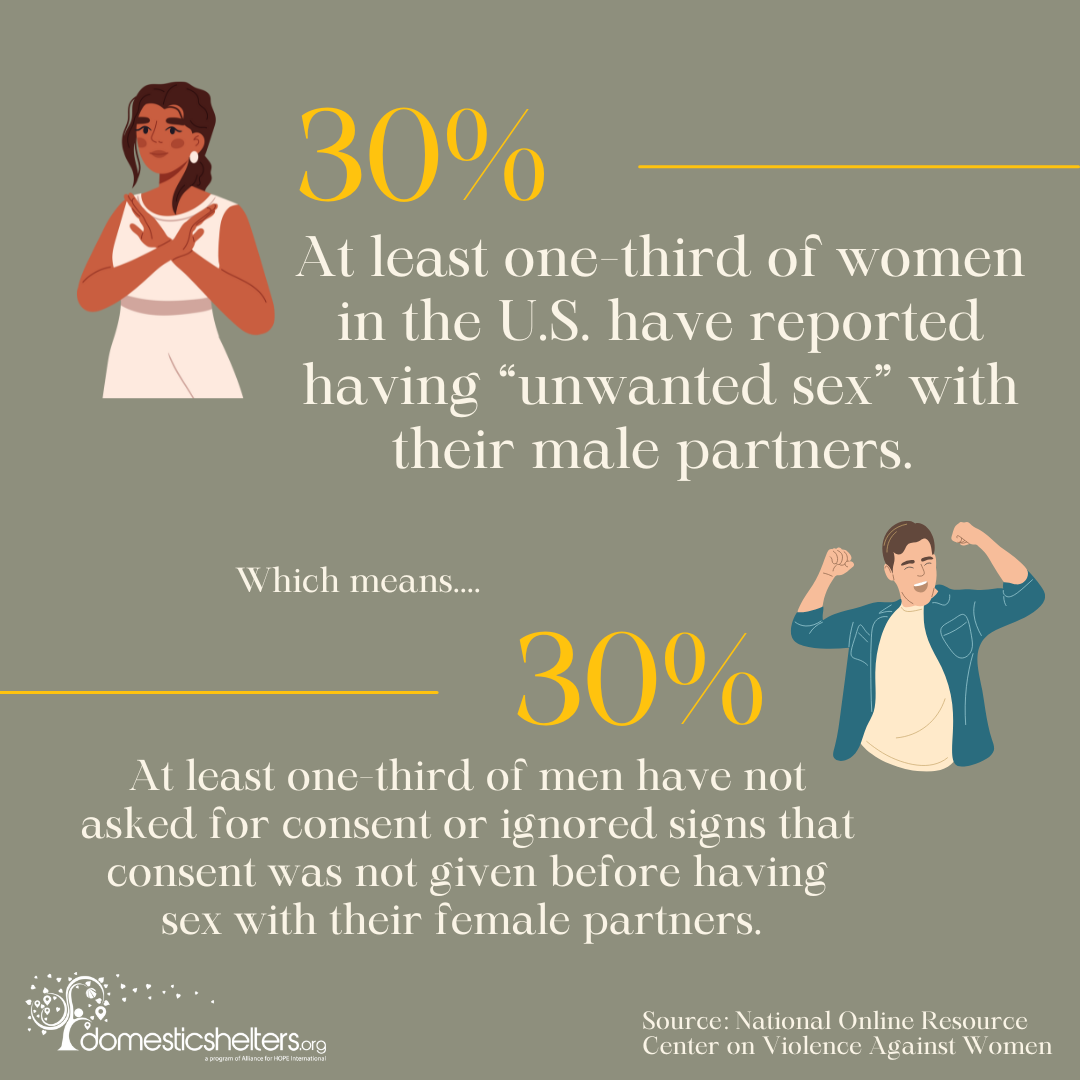 Sexual abuse frequently coincides with other types of domestic violence. According to VAWnet.org, at least one third of women in the U.S. reported having “unwanted sex” with their male partners, while 10-14 percent of married women more definitively said they had been raped by their husbands. Much like domestic violence, rape is underreported, with only an estimated 25 percent of victims disclosing the crime to police. The number is thought to be even less when it’s a marital rape. While rape laws were once written to cover only sexual violence outside of one’s spouse, now all 50 states have updated their laws to make marital rape illegal.