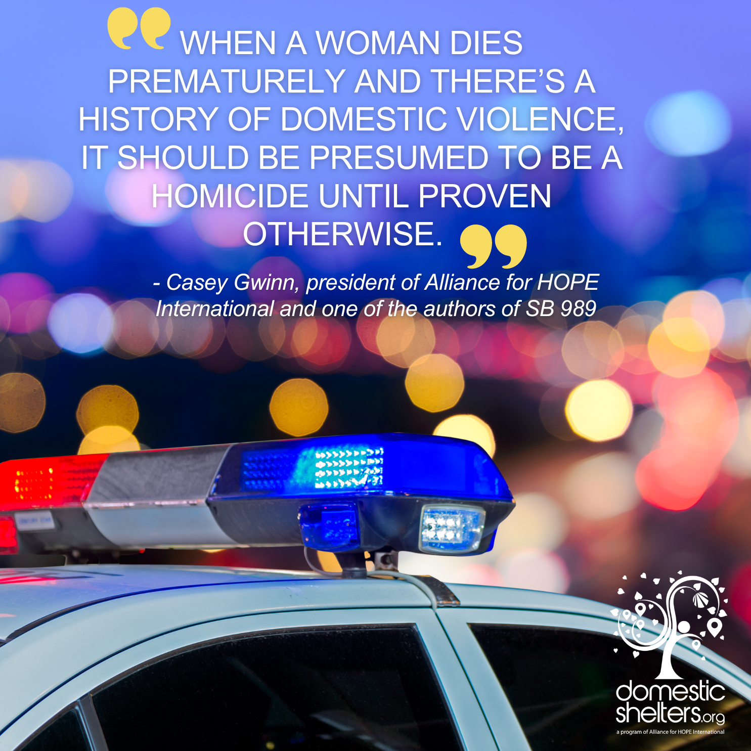 SB 989 would also allow family members of the victim a right to obtain death records when there is a history of domestic violence and to request special consideration from medical examiners and coroners before a determination of a suicide or accidental death.