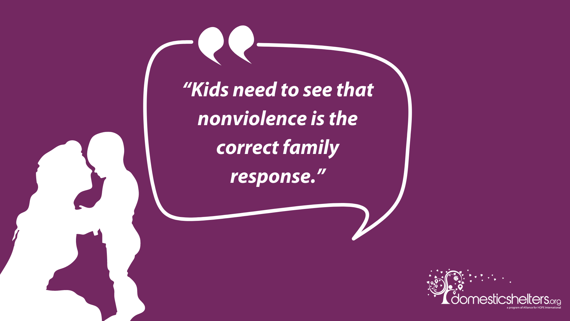 “Modeling is important. So is the community’s response to violence. Kids are very much affected by the social orb outside of the family. To be treated with respect and kindness by other adults in their lives, to have clear messages in schools that violence is not tolerated, that the community provides services and support to those in domestic violence situations. These are powerful elements in teaching children that violence is wrong, that no one deserves abuse and that there is safety and understanding available in their community.”