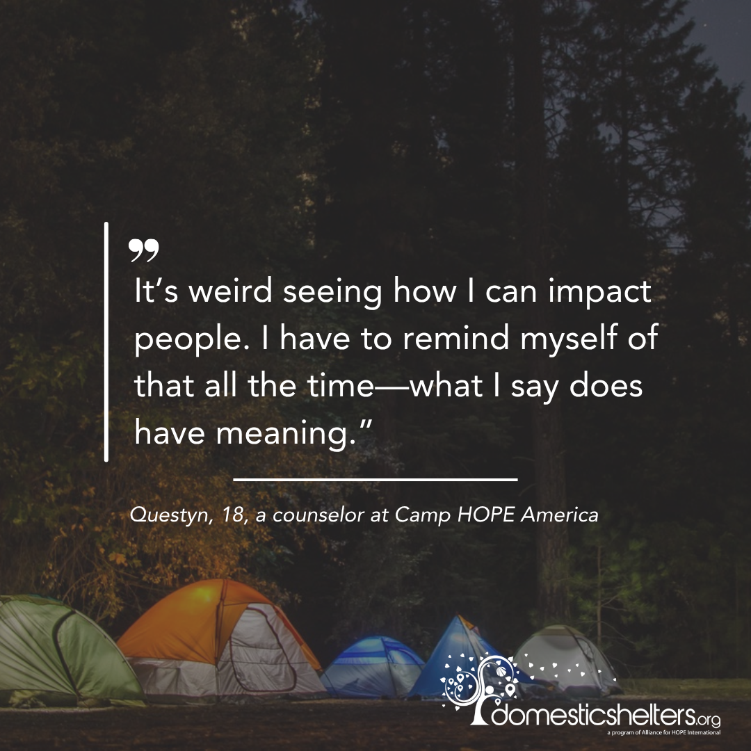 - Former camper Questyn, now a counselor, found her voice and self-worth at Camp HOPE America and is now committed to helping others do the same.