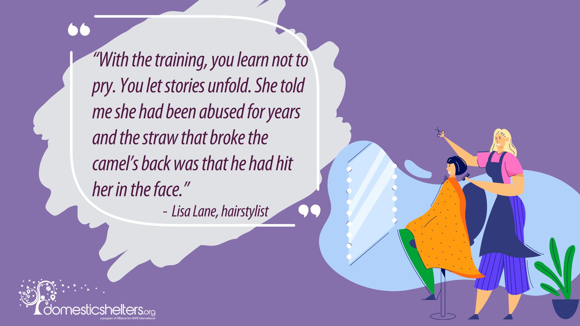 You can’t deny that hairstylists and therapists share more in common than just a suffix in their titles, and because of this, hairstylists often find themselves in the unique positions of learning their clients’ secrets. Sometimes, this includes a disclosure of intimate partner abuse as a client settles into the chair.
