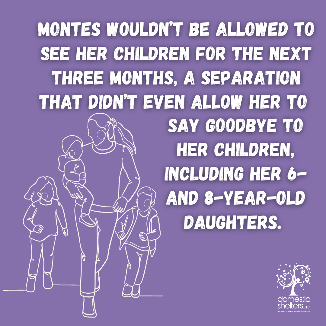Montes wouldn’t be allowed to see her children for the next three months, a separation that didn’t even allow her to say goodbye to her children, including her 6- and 8-year-old daughters.