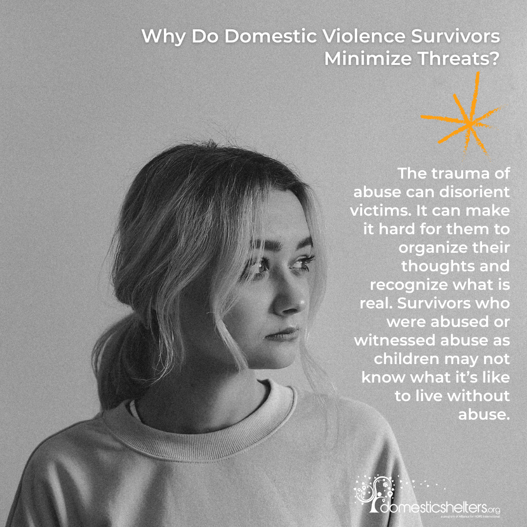 - Survivors may minimize threats due to trauma, fear, denial, or survival strategies, but this can increase danger if patterns of abuse go unrecognized.